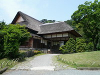 Le premier bâtiment qui se trouve à l’entrée du jardin intérieur est le kakushokaku, l’ancienne demeure des marchands de la famille Hara. La maison construite en 1 909 s’étend sur 950 m2. Aujourd’hui la demeure peut être louée pour diverses occasions comme des congrès, des fêtes ou des cérémonies du thé.