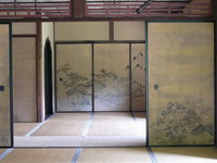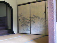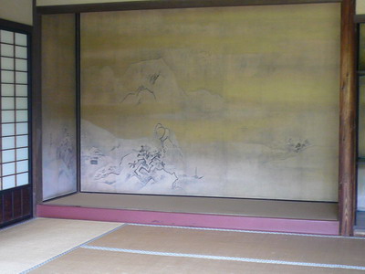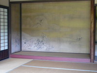 Puis nous arrivons sur la villa Rinshunkaku qui est effectivement le fleuron des bâtiments du jardin. Cette villa construite en 1 649 par la famille Kishu Tokugawa, se tenait à l’origine sur le bord de la rivière Kinokawa à Wakayama. A l’intérieur se trouve de magnifiques fusuma peints (portes en papier opaque).
