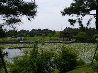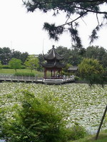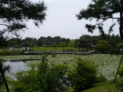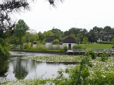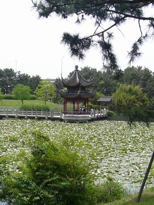 Au bout du jardin, au niveau de l’entrée sud, nous pouvons apercevoir l'étang du Shanghaï Yokohama Yukoen, un jardin chinois.